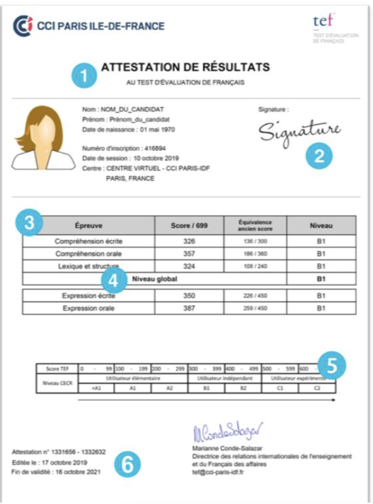 La CCI de Paris t’enverra tes résultats par courriel en format PDF. Tu recevras les résultats entre une semaine et 2 mois après ton passage. Elle précisra le score que tu as obtenu à chacune des épreuves. Pour connaître le niveau de compétence linguistique canadien (NCLC) correspondant à ton score, tu peux te réferer à ce Tableau de correspondance. L’attestation sera valable pendant 2 ans à compter de la date de l’examen.